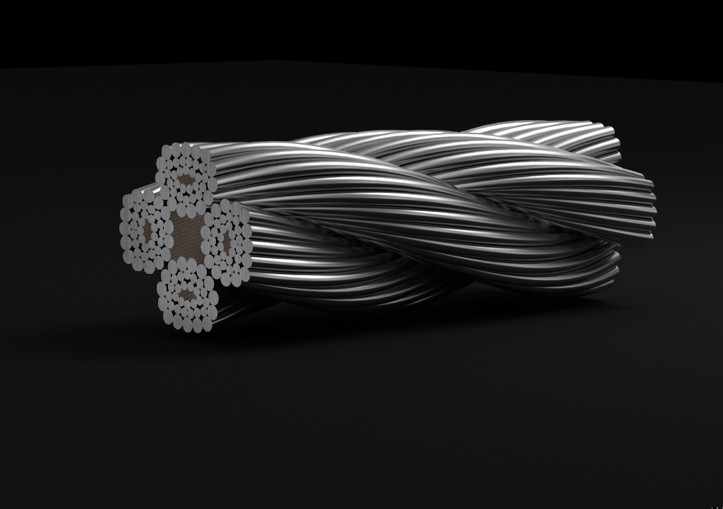 鋼絲繩由多根鋼絲按照一定的規則捻制而成的繩索。由制繩鋼絲、繩股、繩芯和繩用油脂組成。